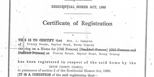 Way back in 1983 Tracey House was first registered as a care home. Originally a private residence with a wealth of local history, having been built by a Mr. W. Tracey, of Bovey Tracey, the home hosted many dignitaries and was the Jewel in the crown of the Tracey family.
